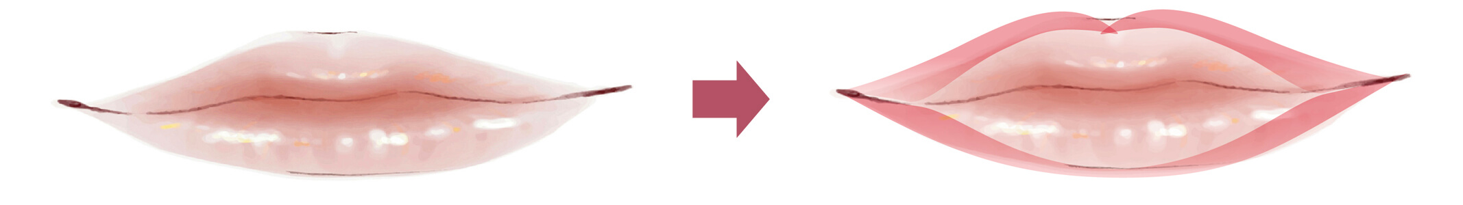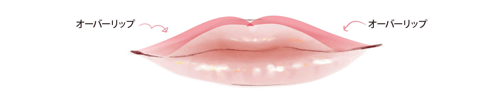 (オーバーリップとは、実際の唇よりやや輪郭を大き目に描くことです。)