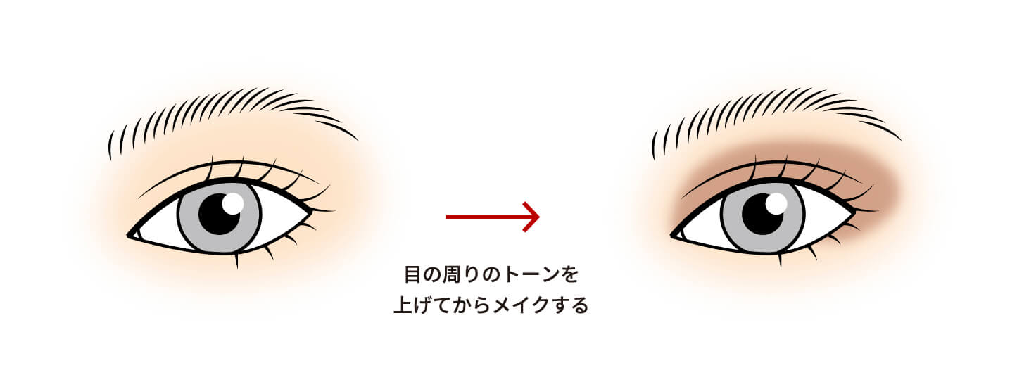 なのでコンシーラや明るめのファンデーションで、目の周りだけをワントーン上げておくとブラウンメイクを施しても暗く見えません。