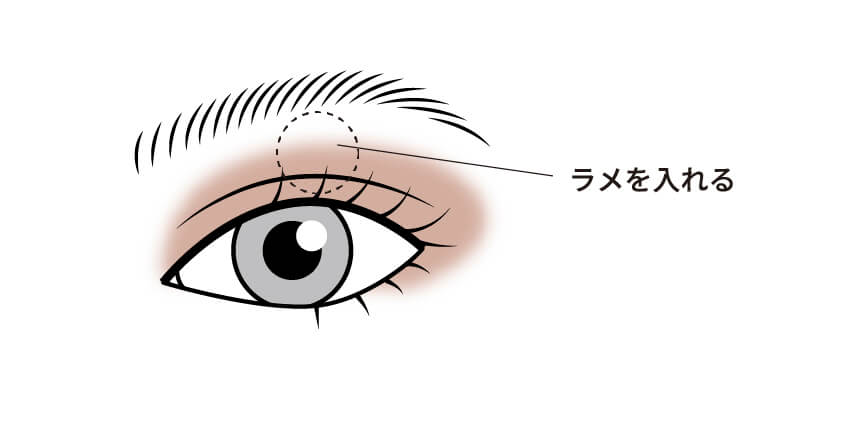 手持ちのブラウンに艶がない場合は、ラメをアイホールに1箇所、